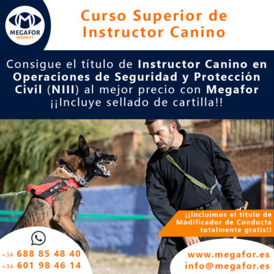 El curso canino de “CURSO SUPERIOR DE INSTRUCTOR CANINO EN OPERACIONES DE SEGURIDAD Y PROTECCIÓN CIVIL” ha sido adaptado al programa de Nivel III del INCUAL (Instituto Nacional de las Cualificaciones Profesionales). Además, el curso cuenta con la homologación y certificación de la ANACP (Asociación Nacional de Adiestradores Caninos Profesionales).